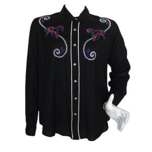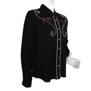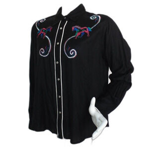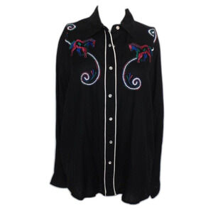 new ADOBE ROSE Shirt, 1X, Horse Embroidery, Snap Front, Black, Long sleeves