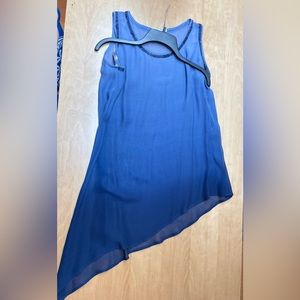 new ALBERTO MAKALI asymmetrical embroidery blue ombré top tunic sz XL