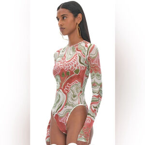 new ANDREA IYAMAH ELLE ABSTRACT MUSHROOM BODYSUIT Floral Long Sleeve