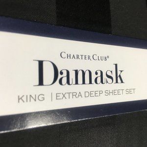 new BLACK STRIPE Charter Club Damask 550TC 100% Cotton KING EXTRA DEEP Sheet Set
