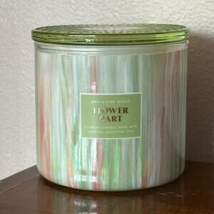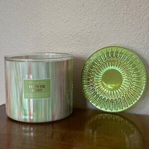 new! Bath & Body Works Flower Cart Glass Lid 3-Wick Candle Spring Green