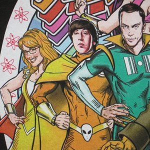 M The Big Bang Theory Men's tee t-shirt Bazinga MEDIUM unisex NEW Sydney Cooper. Jim Parsons, Kaley Cuoco, Penny Cooper, Leonard Raj, Howard sitcom. Black, cribbed rew neck, short sleeves. Unisex, fits more like a men's MED shirt. 38-40" chest. TV show sitcom pop culture. 100% cotton. Measurements: lying flat unstretched pit to pit 19" neck to hem 28.5"