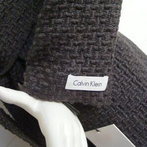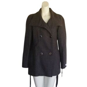 new CALVIN KLEIN Overcoat, S, Basket weave, Gray, Sash Belt, Double Breasted