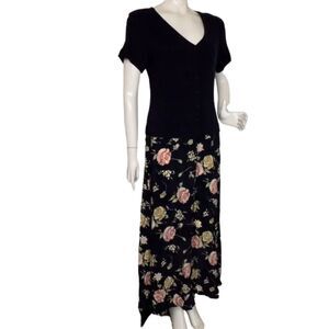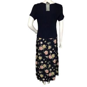 new EXPRESSIONS Dress, L, Vintage, Ribbed Blue Upper/Poly Maxi Skirt, Short slv
