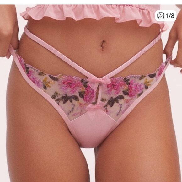 A dreamy thong panty with sultry cutouts and floral embroidery with hints of metallic that shimmer with each subtle movement. FOR LOVE & LEMONS FOR VICTORIA’S SECRET: An exclusive collaboration that blends dreamy confidence with thoughtful detailing, giving each piece a unique and feminine feel.