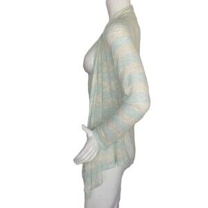 new FRANCESCA BUTTONS Sweater, M, Mint/Off-white, waterfall Open Front, LS
