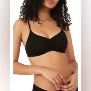 new FREE PEOPLE INTIMATELY The Essential Bralette Black Ruched RAYON