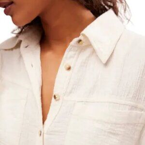new Free People Cardiff 100% Cottone GAUZY! Button-Down Shirt Tunic 3S2