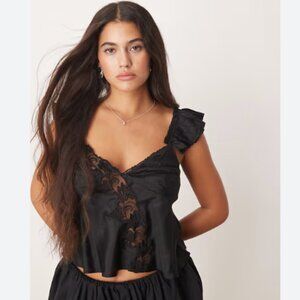 Effortlessly femme and seriously chic, this beautiful tank is featured in a soft fabrication and lightweight design with ruffle-adorned shoulder straps and floral embroidery throughout.
