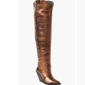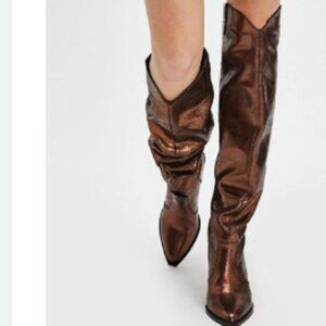 new Free People LEATHER Triple Crown Over the Knee Boot Bronze Metallic