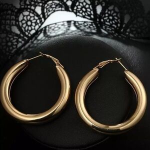 new Gold Plated Large Chunky Tube Hoop Earrings