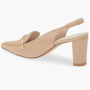 Playful but sophisticated, this slingback leather pump boasts a loafer-inspired topline and textured bit hardware. A pointy toe and wrapped block heel complete the modern and trendy look.