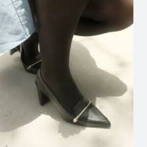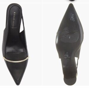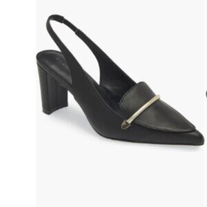 Playful but sophisticated, this slingback leather pump boasts a loafer-inspired topline and textured bit hardware. A pointy toe and wrapped block heel complete the modern and trendy look.