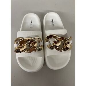 new Kenneth Cole sz5.5 white gold Mello Chain Slide Sandal slip on chunky open