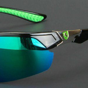 brand new Khan-brand Men's Polarized HD Sport Wrap-Around Sunglasses with reflective lens. Blocks 100% of UVA, UVB, and UVC Rays. Passed U.S. FDA Inspection with impact resistant lenses that meet ANZIZ80.3