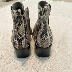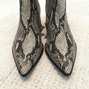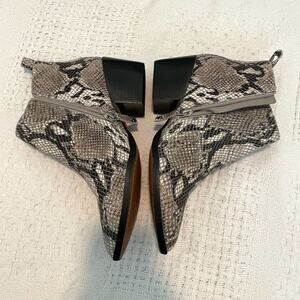 new no tag, no box, sticker residue on soles, LINEA PAOLO, size 5.5 Python Snake Print, Leather Pointed toe, inside zip, 2 1/4 inch heel, 6 1/2 in total boot height at pull tab, ankle boot