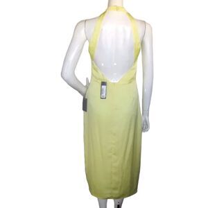 new LULUS Midi Dress, M, Yellow, Open Back, Halter/Buttons, Single vent