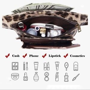 Enough capacity for daily use, such as cellphone, cosmetic, wallet, lipstick, zipper pocket for coins, keys, cash, cards, etc