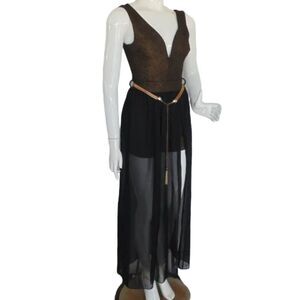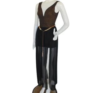 new MADRAG Romper, S, Bronze/Black mesh skirt, Sleeveless, Shorts, Metal Belt