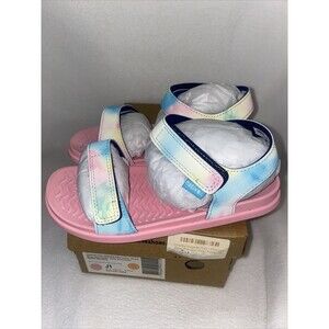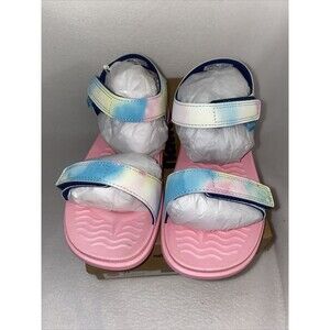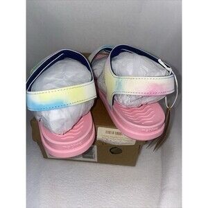Featuring a pink princess rainbow tie-dye sugar lite pattern and adjustable hook and loop strap, these sandals are perfect for any kid who loves color and comfort. With a low-top strappy style and flat heel, these sandals are great for the beach or any summer activity.