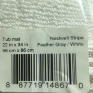 brand new Nestwell™ 100% Cotton Tub Mat ... a.k.a. Foot Towel. It is White with 5 Tan-colored Stripes. Condition is brand new with original retail tags ... UPC 887719148670.