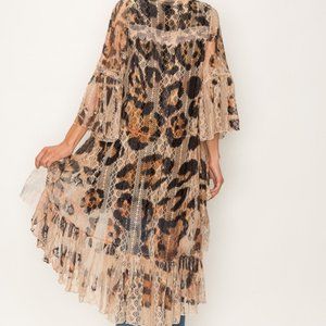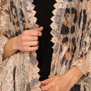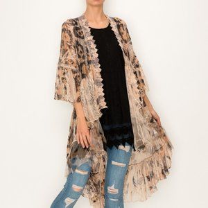 new ORIGAMI ANIMAL PRINT leopard ALL LACE CARDIGAN KIMONO western boho SM-4X