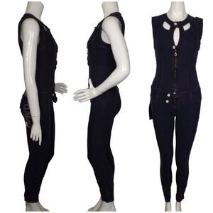 new! SCORPIO Jeans Jumpsuit, JR 1, Purple Denim, Fitted, Embellished/Cutouts