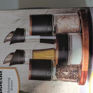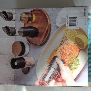 Brand new in the box! Glass containers on an acacia lazy susan. Keep in mind with offers that I will be paying the additional shipping overage out of my own pocket, and Posh takes 20%.