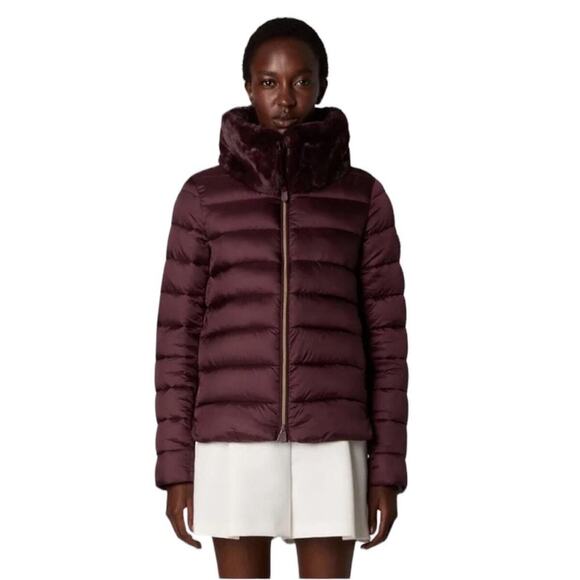 new Save the Duck Sz S Purple Burgundy Mei Faux Fur Collar Puffer Jacket coat