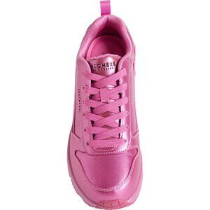 Get out-of-this-world style and comfort with Skechers' Uno-Galactic Gal sneakers, featuring a metallic synthetic leather upper, Air-Cooled Memory Foam® cushioned footbed and Skech-Air airbag midsole.