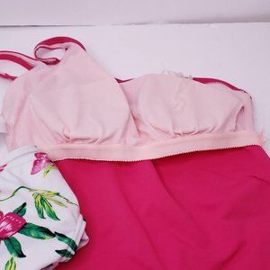 new S Swimsuit Tankini Top Bikini Bottom One Shoulder Top & Scrunch Butt Bikini Bottom SMALL 4 6. New dark pink one shoulder tankini top by Time and Tru paired with white floral with butterflies new Smart & Sexy flattering scrunch butt bikini bottom. Fits size 4 to 6. Really cute set! New with tag.