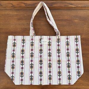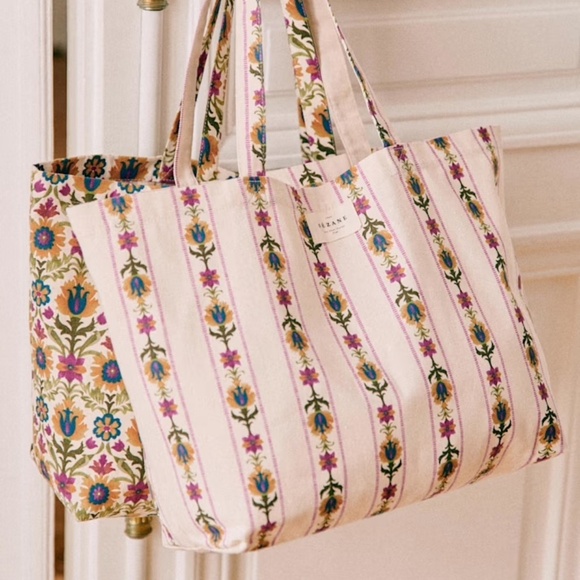 new Sézane floral mosaic tile pattern striped cotton tote bag limited edition