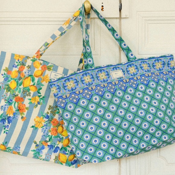 new Sézane x Momonì blue stripes lemon flowers cotton tote bag limited edition