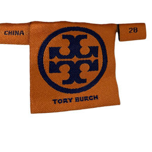 Tory Burch White Izzy crop ankle skinny with criss-cross belt loop detail, Button zipper fly closure, 4 pockets, Skinny leg. In flattering ankle-length jeans, these white Izzy pants are a pair of polished jeans that are great for any occasion. Wear it with the season's sweaters, blouse, and a tailored jacket.