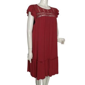 new Torrid Dress, 2, Lace Yoke, Ruffle hem, Flutter cap sleeve, Short, Red Bud