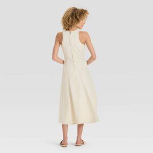 new WHITE Size 16 Future Collective Women's Racerback Denim Midi A-Line Dress
