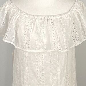 new WITH TAG BISHOP + YOUNG EYELET RUFFLE OFF THE SHOULDER DRESS