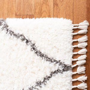 new Wild Sage Abigail Diamond 2' 3" x 7' Shag Runner Rug in Ivory w/ Dark Gray