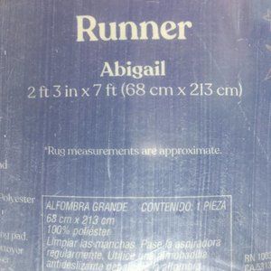 brand new Wild Sage™ Abigail Diamond 2 feet 3 inches wide x 7 feet long Runner Rug featuring Dark Gray Lines on an Ivory background. Made of durable tufted 100% Polyester for softness underfoot. Approximate dimensions: 27 inches x 84 inches. Pile height is approximately 2.3 inches. NOTE: The last photo shows skid resistant backing which helps to reduce shifting. Spot clean only ... do not machine wash. Condition is brand new sealed in plastic ... with original retail tags ... UPC 444800499648.