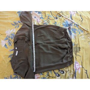 new York & company olive green draped crossover blouse 3/4th sleeve sz s euc