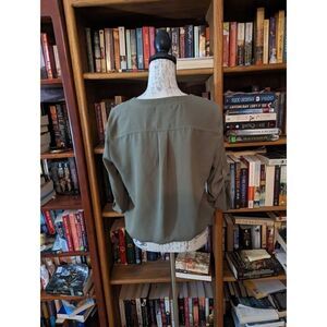 new York & co. olive crossover draped blouse