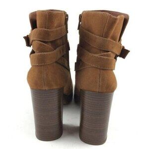 new a new day mid calf boots size 11 Brown Faux Suede platform belted zip chunky