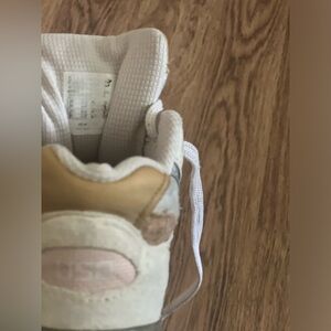 Size 8 although sizing is faded if you need measurements let me know, has some wear some discoloration spotting and the one top of shoelace is missing frayed