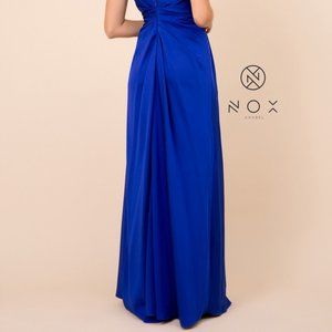 Long Formal Evening Dresses with v-neck, satin dress, open back with zippered closure, a-line shape.