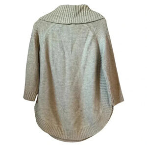 A cozy cream sweater with a large cowl neck, textured knit pattern, and poncho-style design. Measurements Approximately