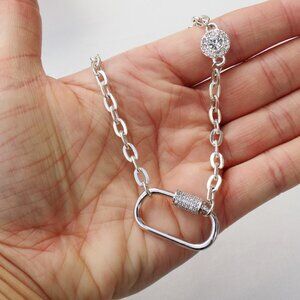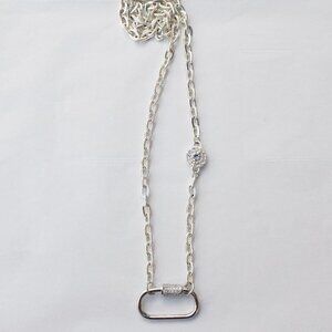 new in box! carabiner on paperclip link chain necklace cz charm silver