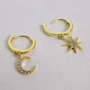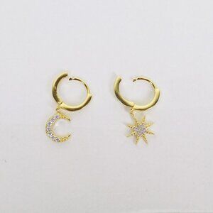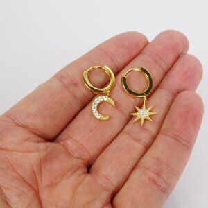 new in box! starburst sun crescent moon charm huggie earrings