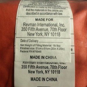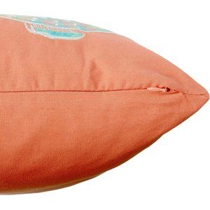 brand new Tommy Bahama Batik Fish Accent Pillow featuring an embroidered novelty fish design on a bold orange background. Pillow is embroidered on one side (colors include orange, aquamarine, and champagne). Other side plain (no print, no embroidery). Designed with zip closure. Pillow label states: "20 inches wide x 20 inches long x 5 inches deep. Pillow Cover is 100% Cotton. Insert Pillow is 95% Feather, 5% Duck Down Filled. Spot clean only." Condition is brand new in plastic package with original retail tags.