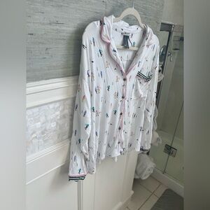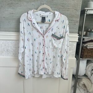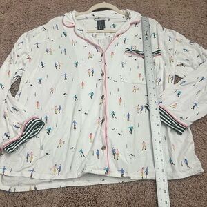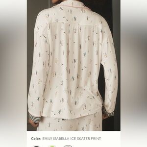 new medium Anthropologie briar piped pajama top button down ice skate winter ski
