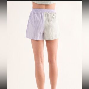 set of shorts and short-sleeved overshirt and striped print and has two colors green and lilac, new